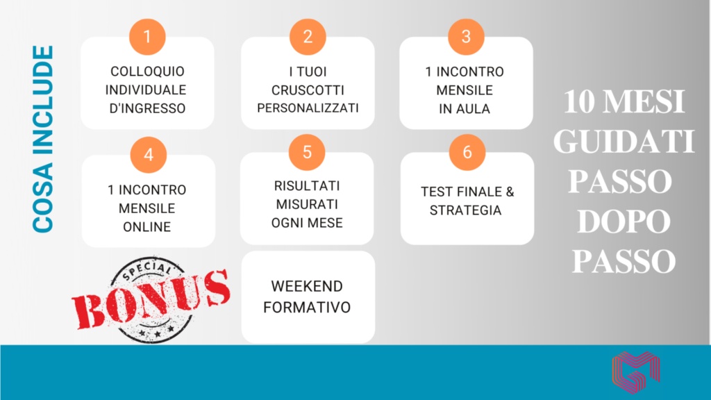 - Un incontro della durata di una giornata al mese per 10 mesi in cui ti trasmetteremo tutto il nostro know how che ci ha fatto apprezzare da centinaia di imprenditori sparsi in tutta Italia . Gli incontri saranno per la maggior parte online su ZOOM con un paio in presenza.
